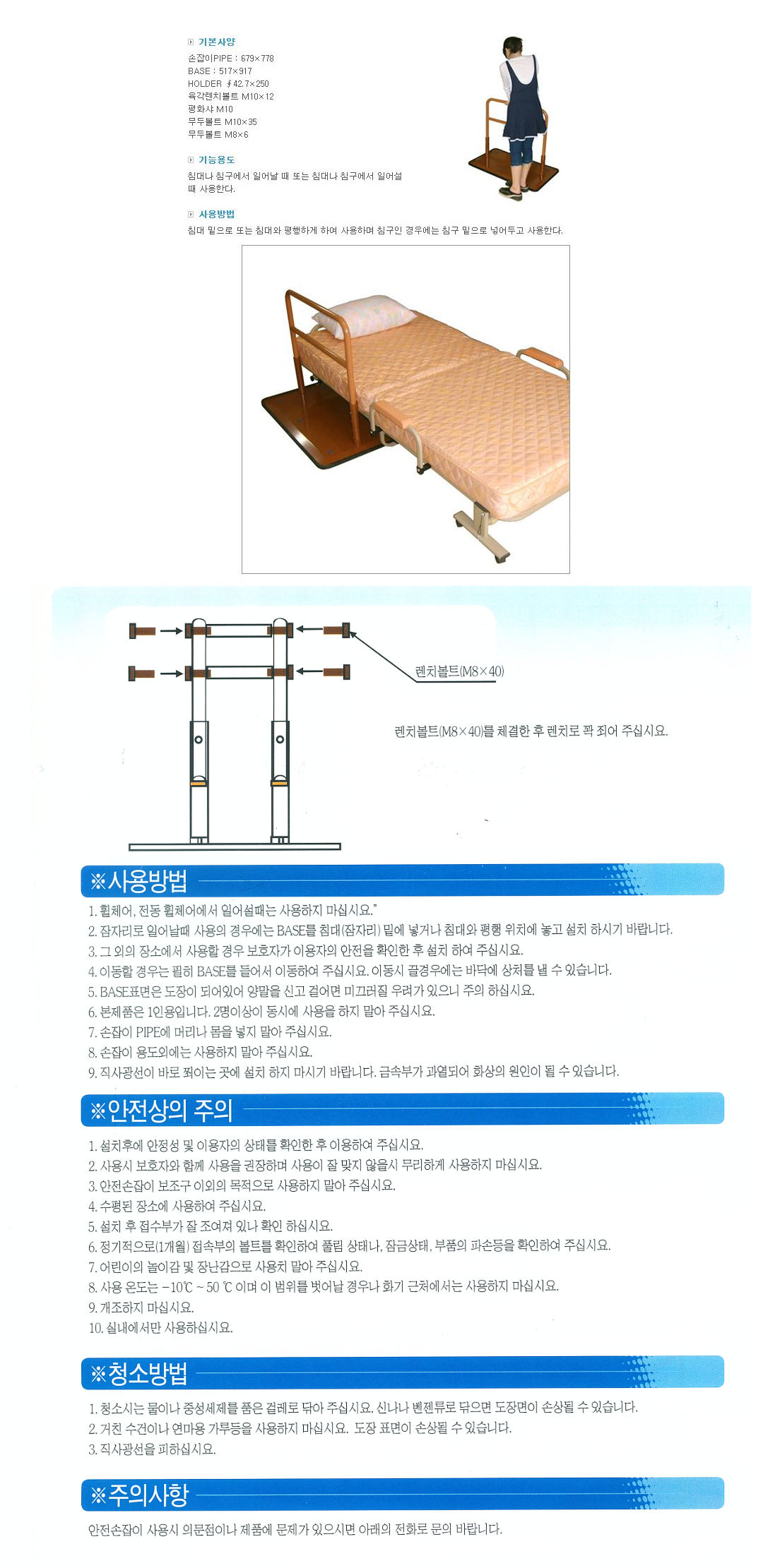 침대에서 취침 시 일어나거나 앉을 때, 균형을 잡을 때, 주무실 때, 난간에 의지하여